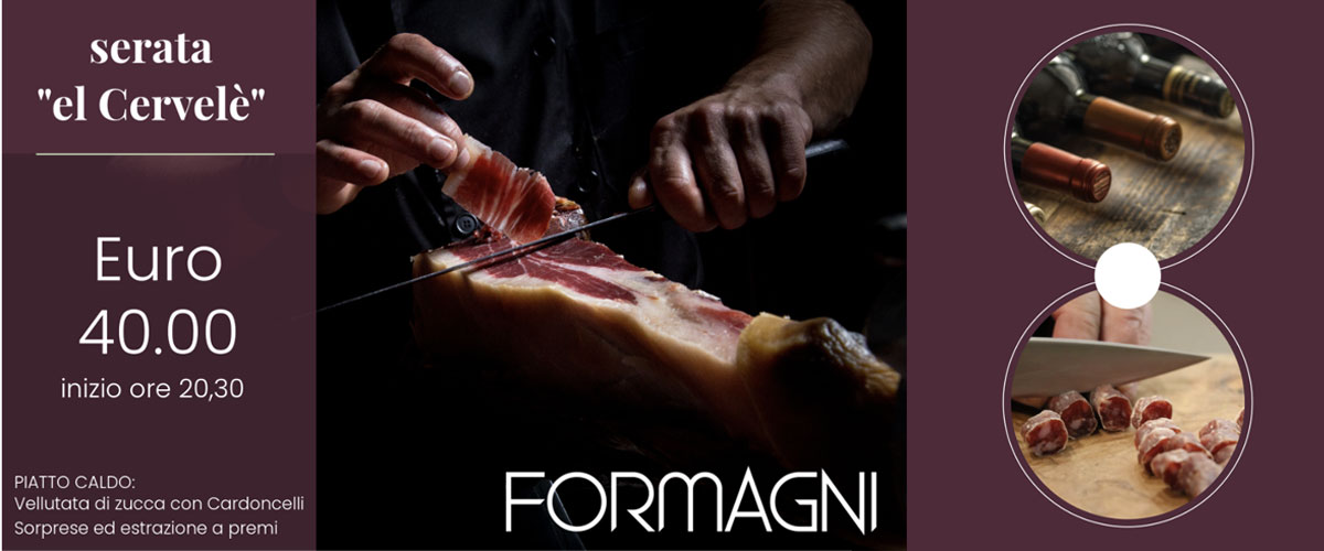 Assaggeremo alcuni salumi del salumificio Chiapella, un prosciutto crudo leggermente affumicato di Osvaldo ed il rarissimo prosciutto crudo dell’antica razza Mangalica, allevato allo stato brado. E poi il “Salame della rosa” in budello gentile ancora di Chiapella e i suoi mini Bardot. Che dire una serata unica annaffiata da alcuni vini in abbinamento. Il piatto caldo sarà un assaggio di vellutata di zucca con i Cardoncelli.
