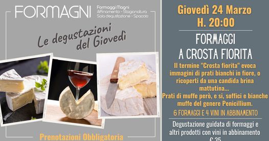 Serata Inglesi Incredibile serata in cui faremo la conoscenza dei formaggi Inglesi.Ci saranno tre differenti Cheddar, con stagionature sopra i due anni, due Caerphylli (formaggi regionali), i red Leichester e i famosi erborinati Stilton e Shropshire.Durante la degustazione assaggeremo degli ottimi vini di diverse cantine; da un metodo classico fino ad un passito per accompagnare tutte le sfumature organolettiche […]