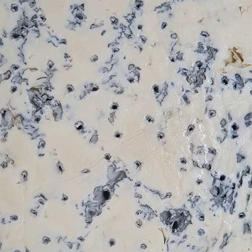 Struttura: pasta molle, deformabile, leggermente untuosa, con presenza di erborinatura uniformemente distribuita di color blu intenso.